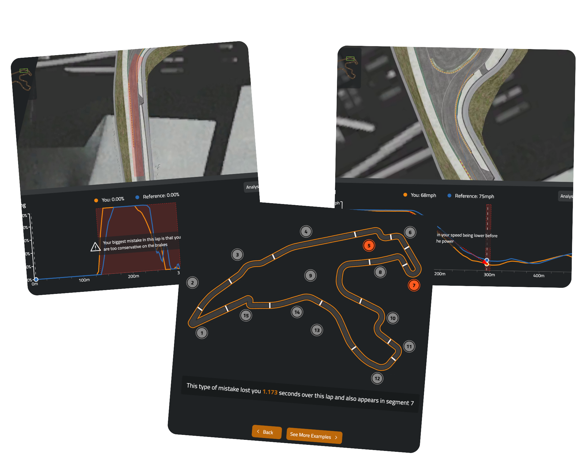 We instantly show you your biggest areas for improvement or help you understand why one F1 driver is faster than another